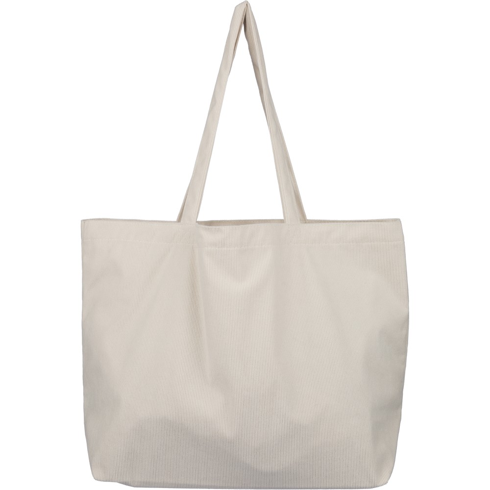 Kordbársony anyagból készült válltáska 2,5 × 60 cm hosszúságú fülekkel, 51 × 15 × 33 cm méretű tágas fő rekesszel és 10 × 10 cm méretű belső zsebbel. Mindennapi használatra alkalmas.