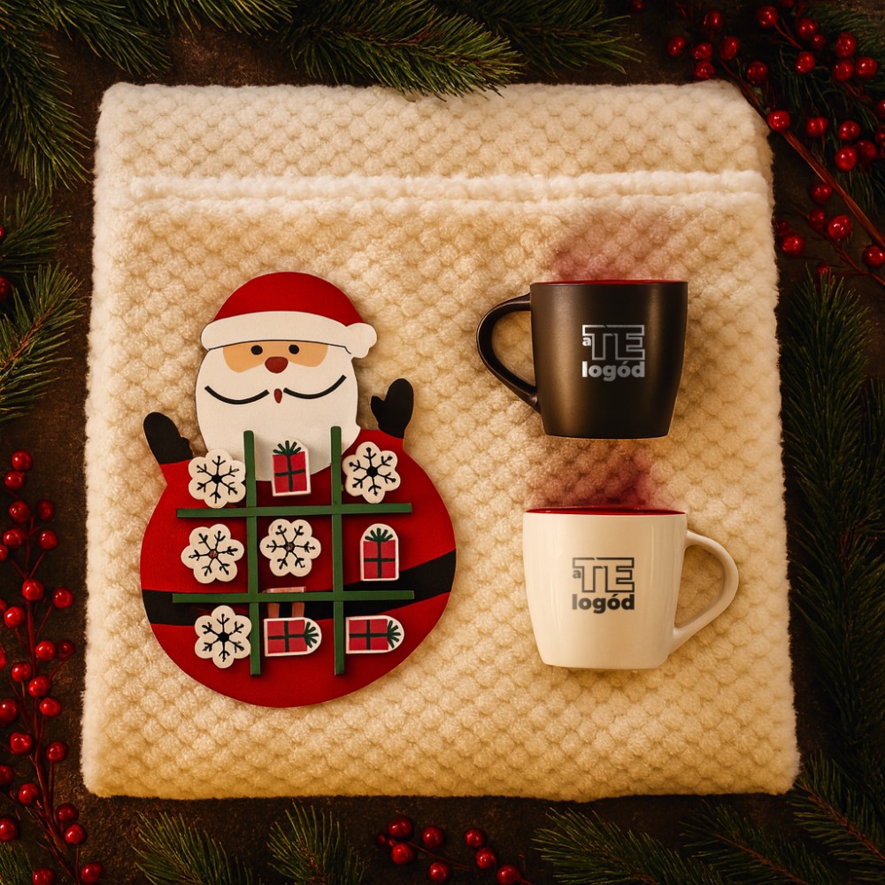 A fehér, északi tájak hangulatát idézi ez az ajándékcsomag, amely játékos és meghitt elemekkel teszi különlegessé az ünnepet, mert párban szép az élet. A csomag tartalma: karácsonyi amőba játék (CX1568-05), Aztex kerámiabögre (10047702), Riviera kerámiabögre (10047602), polártakaró waffle mintával (976631-357). Csomagolási lehetőségekről érdeklődj ügyfélmenedzserednél! A kép illusztráció. A kínálatunkban szereplő termékek igény szerint kombinálhatók. A csomagot rendelés esetén állítjuk össze. Várható szállítási határidő: kb. 2 hét. A termékek emblémázását és csomagolását nem tartalmazza a csomag ára.