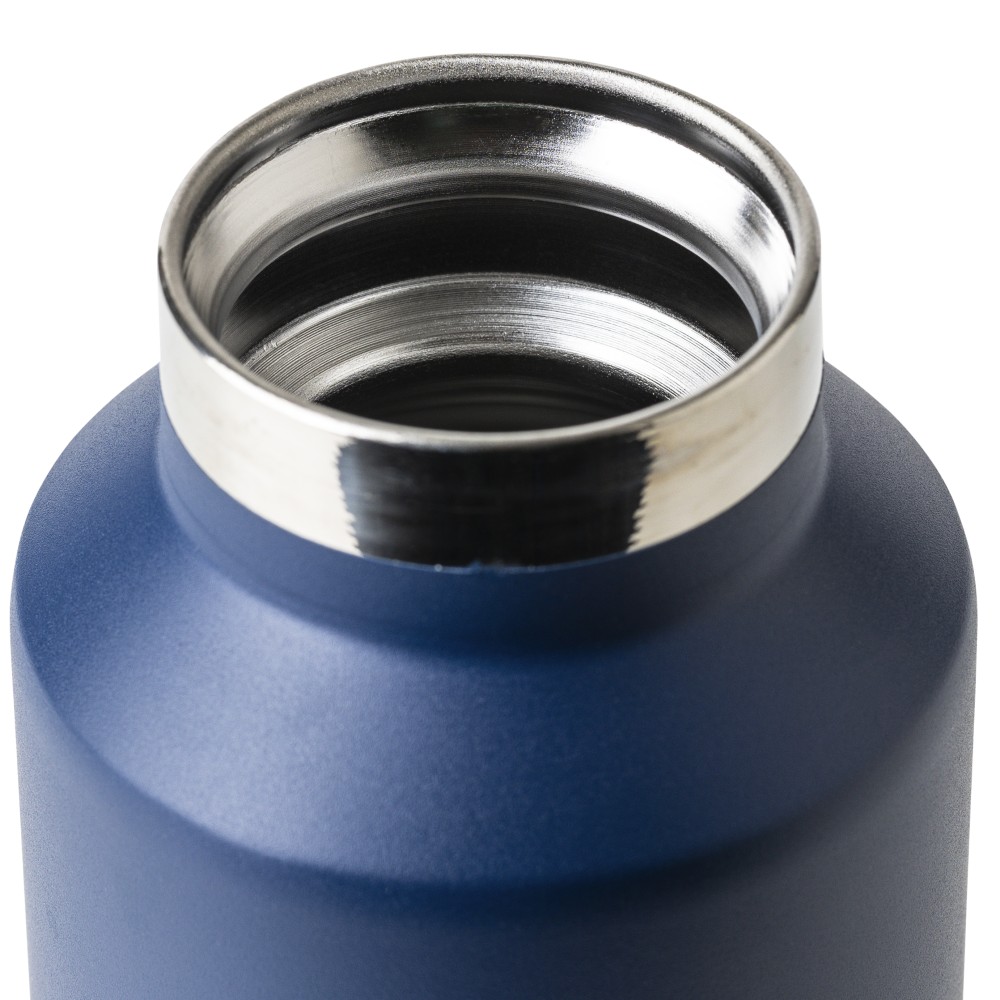 Újrahasznosított rozsdamentes acélból készült, vákuumszigetelésű palack 600 ml űrtartalommal, duplafalú kialakítással, hordozófüllel ellátott PP fedéllel és kétféle (dupla) nyitási lehetőséget biztosító nyomógombos rendszerrel. A palacktesten lézergravírozott recycled (újrahasznosított) alapanyagra utaló logó található. Darabonként barna kartondobozba csomagolva.