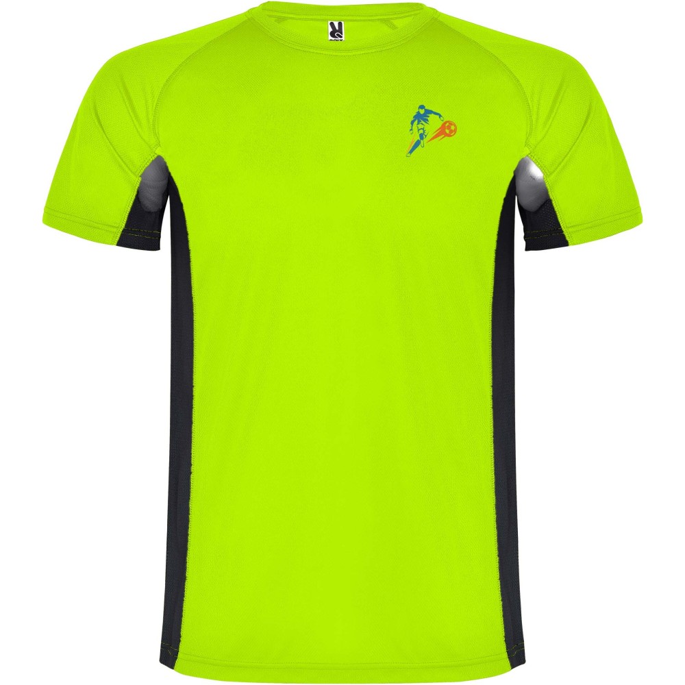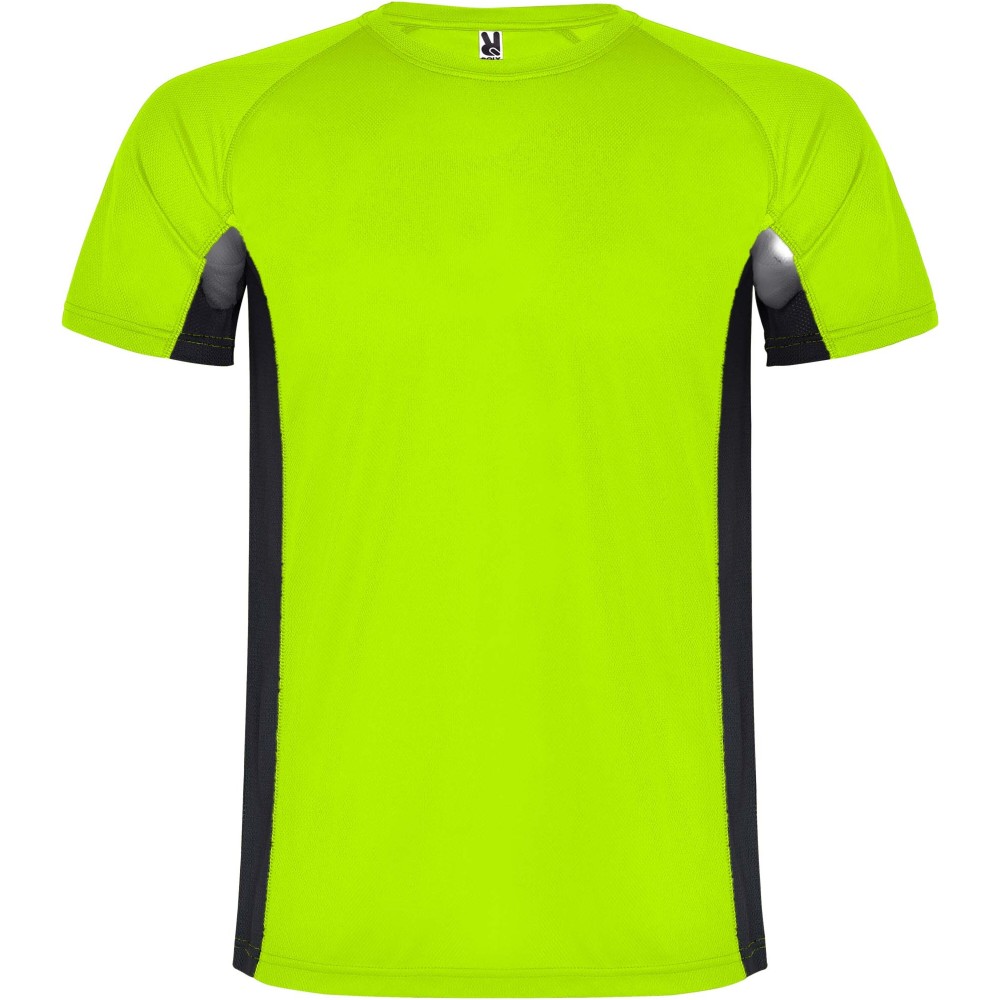 Roly Shanghai rövid ujjú gyerek sportpóló, fluor green, solid black